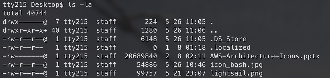 ls だけでは情報量が不十分かつ見にくいですね。かといって毎回 ls -la を入力するのはちょっと煩わしい。