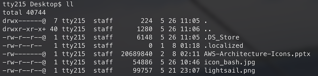 エイリアスを設定することで ll を入力するだけで ls -la と同じ結果を出力するようになります。便利!